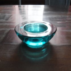Värmeljushållare, blått glas med målning '96