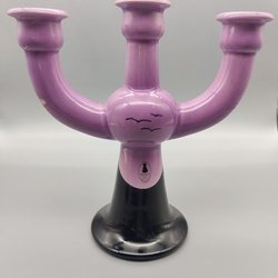 Ljusstake - Rosa Ljung Svart Rosa Trearmad Ljushållare - Ovanlig Retro Vintage