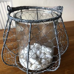 Ljuslykta i metall med handtag