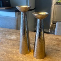 Två ljusstakar i metall