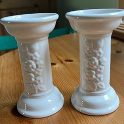 Två vita ljusstakar Höganäs