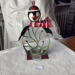 Ljuslykta som en en pingvin med glashållare till värmeljus