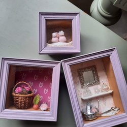 3 Stycken jättefina Väggdekorationer-inglasade Tittskåp.
