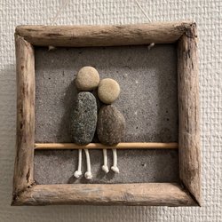 en fin tavla av krossad natursten med landskapsmotiv på träsnitt, handgjord