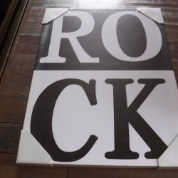 Canvastavla i svart och vitt med texten ROCK 30 x 40 x 2 cm