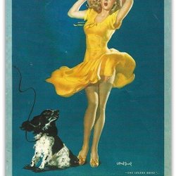 Birgitta Lindeblad tavla tryck träram kvinna som stavar med kerub och mås