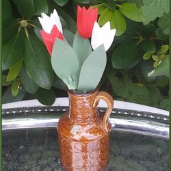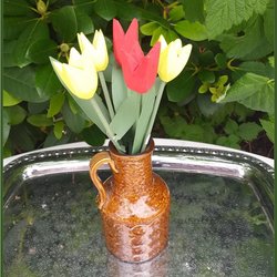 Paret trätulpaner med blad 3 gula och 2 röda med blad Fint skick