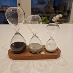 Timglas med träställ, 3st i olika storlekar, dekorativt.