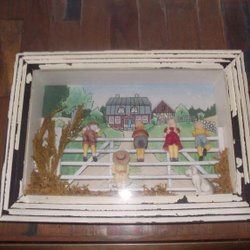 Gulligt tittskåp med 5 barn och en hund