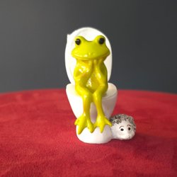 Groda på toalett med igelkott