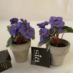 Små Saint Paula. 2 stycken lila med kruka. Konstgjorda. 12 cm höga.Fr presentbut