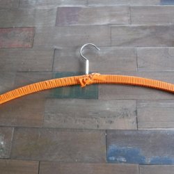 Äldre modell av galge inplastad med orange tejp