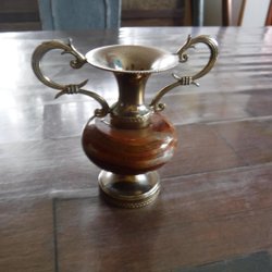 Vintage brass metal container with enamelled and painted lid-circa 1970s-112g