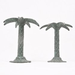 Ljusstakar – Palmformade – Brons – Grön patina – Ca 16 cm – Par