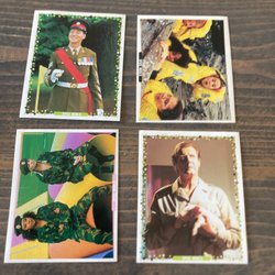 6 st vykort med kändisar, brittisk-pop-rock bla INXS, Pulp, Gene, retro