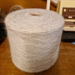 Blandgarn22: 50gr med 75% mohair, 25% nylon, ljusgrå.