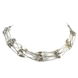 Ett nobelt halsband, i silverfärg och beige, 49 cm långt.