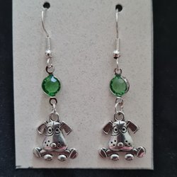 örhängen med hundar, grön sten