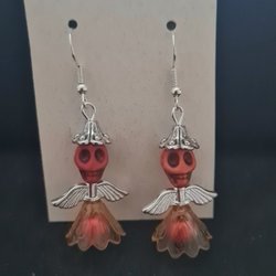 Orange Örhängen med dödskallar och änglavingar