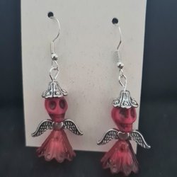 Röda Örhängen med dödskallar och änglavingar