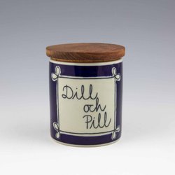 Keramikburk "Dill och Pill" med lock i teak, Rörstrand, Marianne Westmann