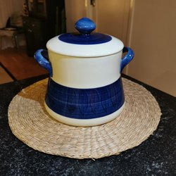 Koka blå skål med lock
