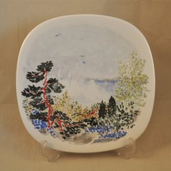 Rörstrand, Harald Wiberg, porslin, väggtallrik "Rådjur i vårbrytning" 1988