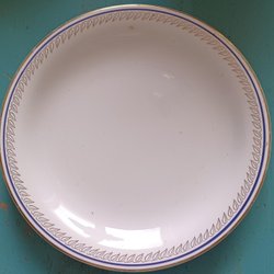 En tallrik i flintgods från Rörstrand. Från serien VÅR. Tillverkade på 1900-tal.