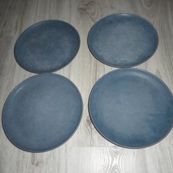 Höganäs Keramik 4 mattallrikar vossblå är i beg skick matta i färgen av maskin