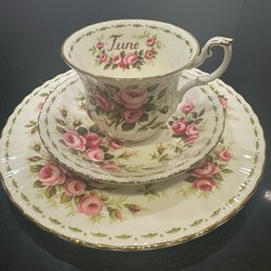 April månadskopp med fat, Assiett Royal Albert England