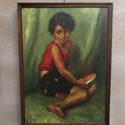 Inramat tryck/reproduktion, flicka med melonskiva