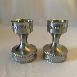 LINNA TINAA ljusstakar i tenn. 2 st.12 cm hög, 8 cm i diameter Nya fr äld gulds