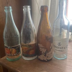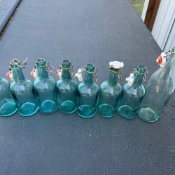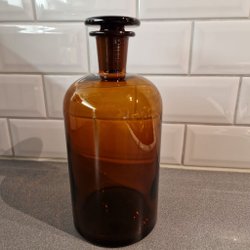 • Antika medicinflaskor i bruntonat glas