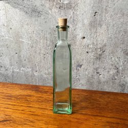 Glasflaska med kork lätt grönt skimrande