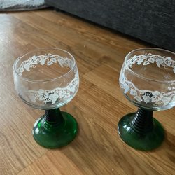 2 st Remmare, Heidelberg Tyskland Glas Vinglas likör/snaps–glas Grön fot - Retro