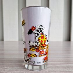 2 st glas med apelsinmotiv – ca 9 cm, retro juiceglas 70-tal stil
