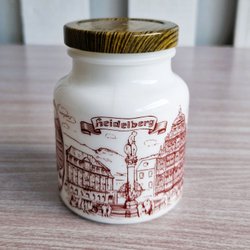 Heidelberg Souvenir White Glass Jar with Metal Lid – German City Landmark Design