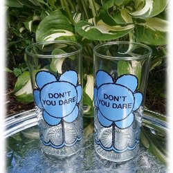 Paret longdrink glas eller vanliga med texten Don´t you darei blå blomma