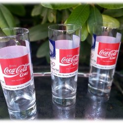 Anrika Coca-cola glas från OS i Lillehammer 1994 Reg trademark Fitn skick
