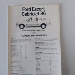 Ford Escort Cabriolet -86 produktblad