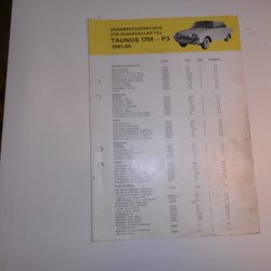 SNABBREFERENSLISTA FÖR RESERVDELAR TILL TAUNUS 17M - P3 1961-64