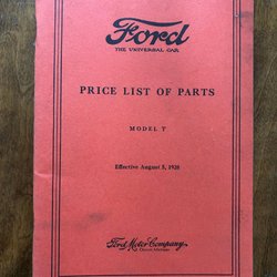 Ford Model T Prislista för Delar, 1928