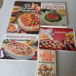 Här är några exempel på olika typer av kokböcker som du kan hitta till riktigt bra priser här på Tradera:
