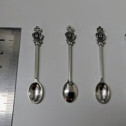 Tre små skedar i silverfärgad metall