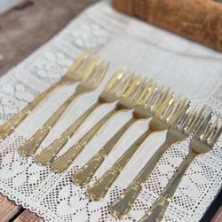 Bakelsegafflar 8 st guldfärgade rostfritt stål 13 cm tårtgafflar dessertbestick