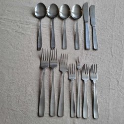 Gense Thebe | Folke Arström | bestick | 9 knivar & 9 gafflar | Rostfritt st