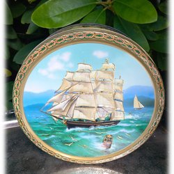 Underbara Silver Crane producerad för Jacobsens Bakery kakburk med skepp