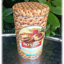 Fin cylinderformad Rondik Krisp knäckebrödsburk i plåt Fint skick
