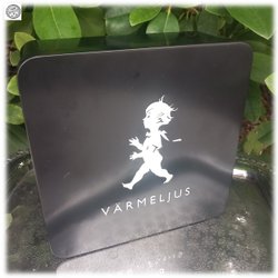 Solstickan plåtburk för värmeljus i svart med silverfärgat motiv Fint skick