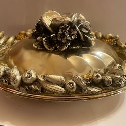 Silverfärgad skål med lock